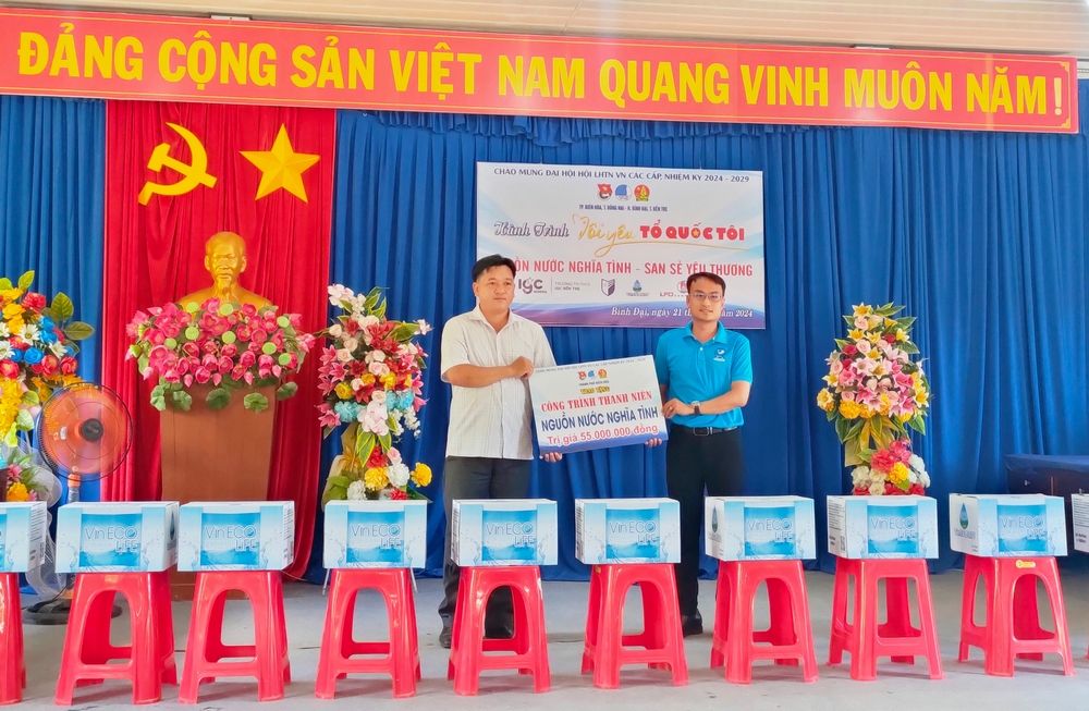 Ngày 21/4/2024, Thành đoàn, Hội LHTN Việt Nam thành phố Biên Hoà đã tổ chức chương trình “Nguồn nước nghĩa tình - San sẻ yêu thương” tại tỉnh Bến Tre. Tại chương trình, đã trao tặng 530 thùng suối (loại 500ml), 80 bình nước (loại 30L), 6 phần quà (mỗi phần trị giá 500.000 đồng) cho người dân tại Huyện Bình Đại, tỉnh Bến Tre.