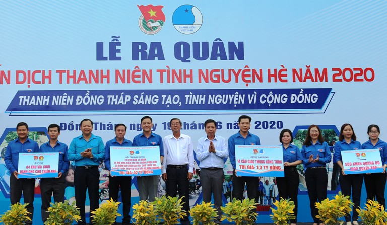 Tại buổi lễ, Ban Thường vụ Tỉnh đoàn tặng trao tặng 20 cụm dân cư xanh, 20 mô hình biến bãi rác thành vườn hoa, 20 điểm vui chơi giải trí cho thiếu nhi, 20 đội tuyên truyền viên bảo vệ môi trường với tổng trị giá 2 tỷ đồng cho 20 xã phấn đấu đạt chuẩn nông thôn mới tại 8 đơn vị cấp huyện: Tân Hồng, Hồng Ngự, Tam Nông, Thanh Bình, Huyện Cao Lãnh, Lai Vung, Lấp Vò, Châu Thành; trao tặng 14 cây cầu Hy vọng trị giá 1,3 tỷ đồng cho 04 đơn vị: Huyện Thanh Bình, Huyện Lấp Vò, Huyện Lai Vung, Huyện Tam Nông.