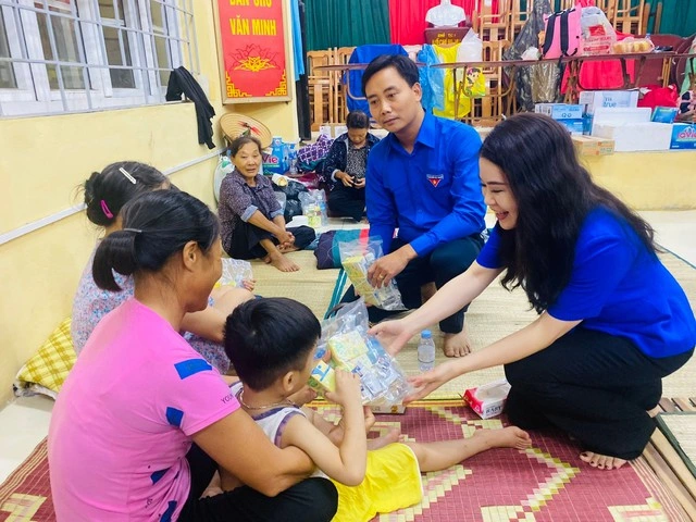 Để kịp thời động viên lực lượng thanh niên tình nguyện thực hiện nhiệm vụ, chiều ngày 11.9, đoàn công tác của Thành đoàn do Bí thư Thành đoàn Hà Nội Chu Hồng Minh dẫn đầu đã đến thăm, tặng quà lực lượng đoàn viên, thanh niên tình nguyện và người dân phải di dời do ảnh hưởng của bão lũ tại địa bàn huyện Thường Tín.