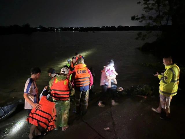Tại huyện Sóc Sơn, 5 xuồng máy cũng được huy động để cứu hộ người dân dọc các tuyến đê xã Việt Long và xã Bắc Sơn. Đến tối ngày 11.9, đội hình thanh niên tình nguyện và lực lượng chức năng trên địa bàn huyện đã di dời 400 hộ dân với 2.000 nhân khẩu tới địa điểm tập trung an toàn.