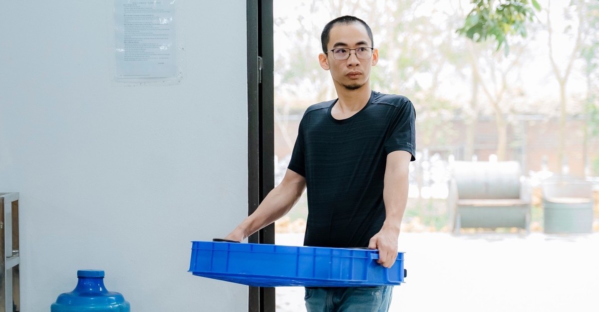 Anh Vũ Trung Đức, Giám đốc HTX Sinh Dược cùng các công nhân làm bánh xà phòng