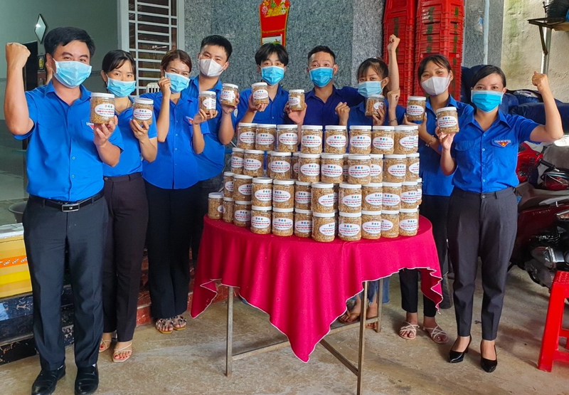 Các cơ sở Đoàn trong toàn huyện Hớn Quản đã nhanh chóng vào cuộc, chung tay làm hàng trăm hũ mắm ruốc xào thịt để gửi cho người dân ở các khu cách ly tại Bắc Giang
