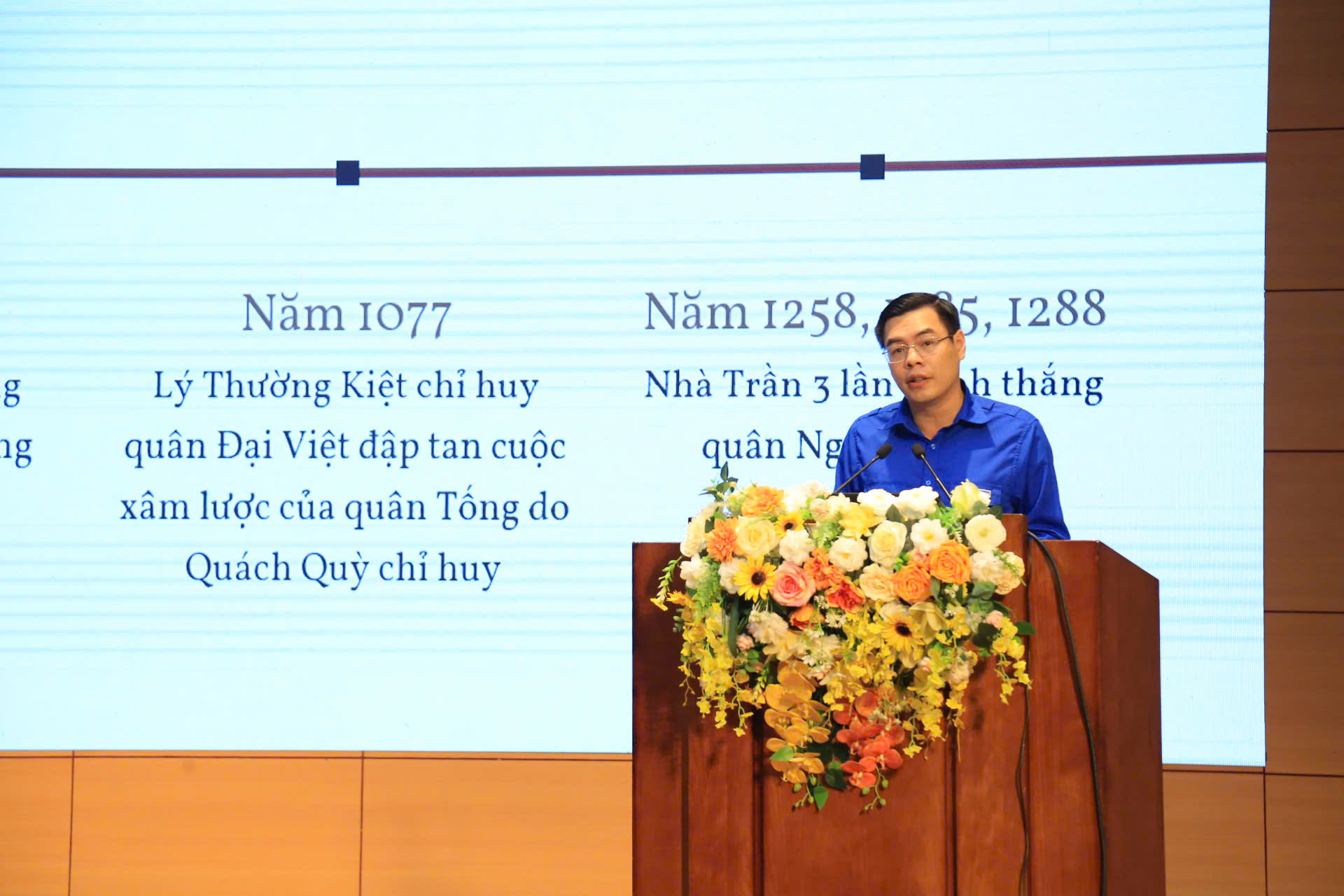 Tiếp nối chương trình, đồng chí Hà Đức Hải – Phó Chủ tịch UB MTTQ Việt Nam tỉnh, Bí thư Tỉnh Đoàn Lào Cai đã truyển đạt nội dung chuyên đề Tự hào lịch sử dân tộc – Sẵn sàng xây dựng đất nước. Anh nhấn mạnh, tuổi trẻ Lào Cai hôm nay luôn khắc ghi công lao trời biển của cha anh đi trước, coi đó là lời thề thiêng liêng để tiếp nối. Trước anh linh các thế hệ, tuổi trẻ Lào Cai bày tỏ quyết tâm giữ vững nền độc lập, đồng thời không ngừng nỗ lực, sáng tạo, góp phần xây dựng quê hương, đất nước ngày càng giàu đẹp, văn minh. Trong đó trong thời gian tới tổ chức Đoàn sẽ tập trung triển khai phong trào 5 tiên phong và Chiến lược phát triển toàn diện thanh niên Lào Cai để thực hiện các mục tiêu mà Đảng ta đã đề ra đến năm 2030 (Kỷ niệm 100 năm thành lập Đảng Cộng sản Việt Nam) và năm 2045 (kỷ niệm 100 năm thành lập nước Việt Nam Dân chủ Cộng hòa, nay là nước CHXHCN Việt Nam)