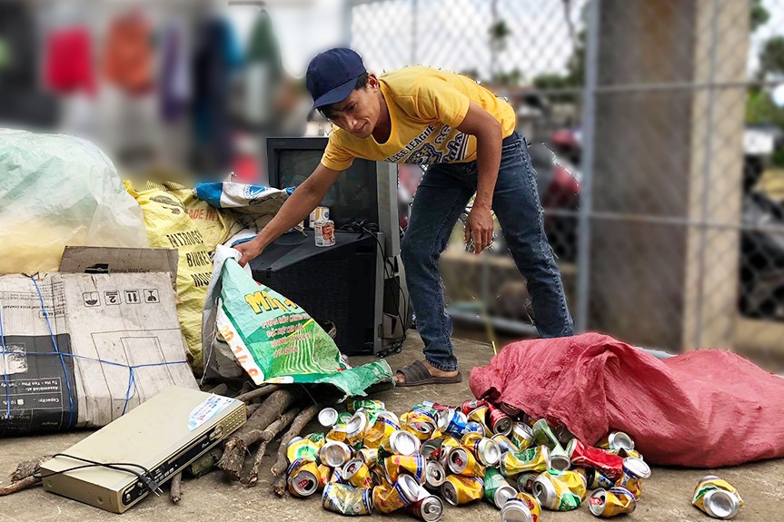 Hàng ngày, anh Lư Ngọc Duy đi thu mua ve chai kiếm sống