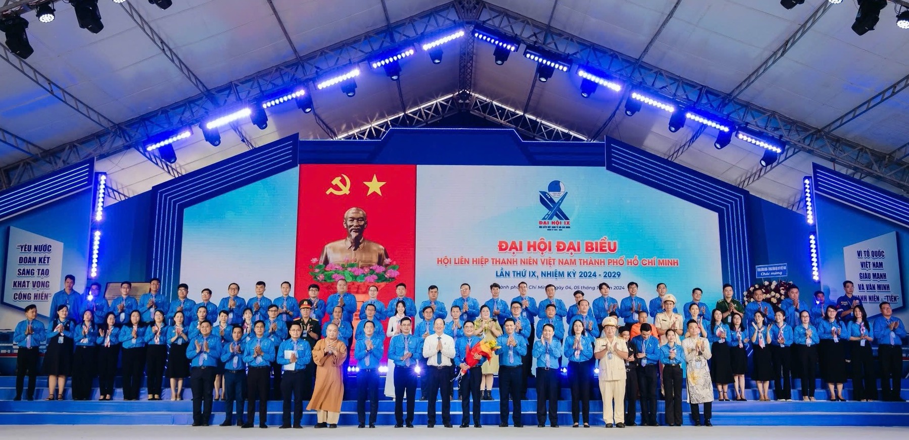 Các đại biểu chụp ảnh lưu niệm tại Đại hội đại biểu Hội LHTN Việt Nam thành phố Hồ Chí Minh lần thứ IX, nhiệm kỳ 2024 - 2029
