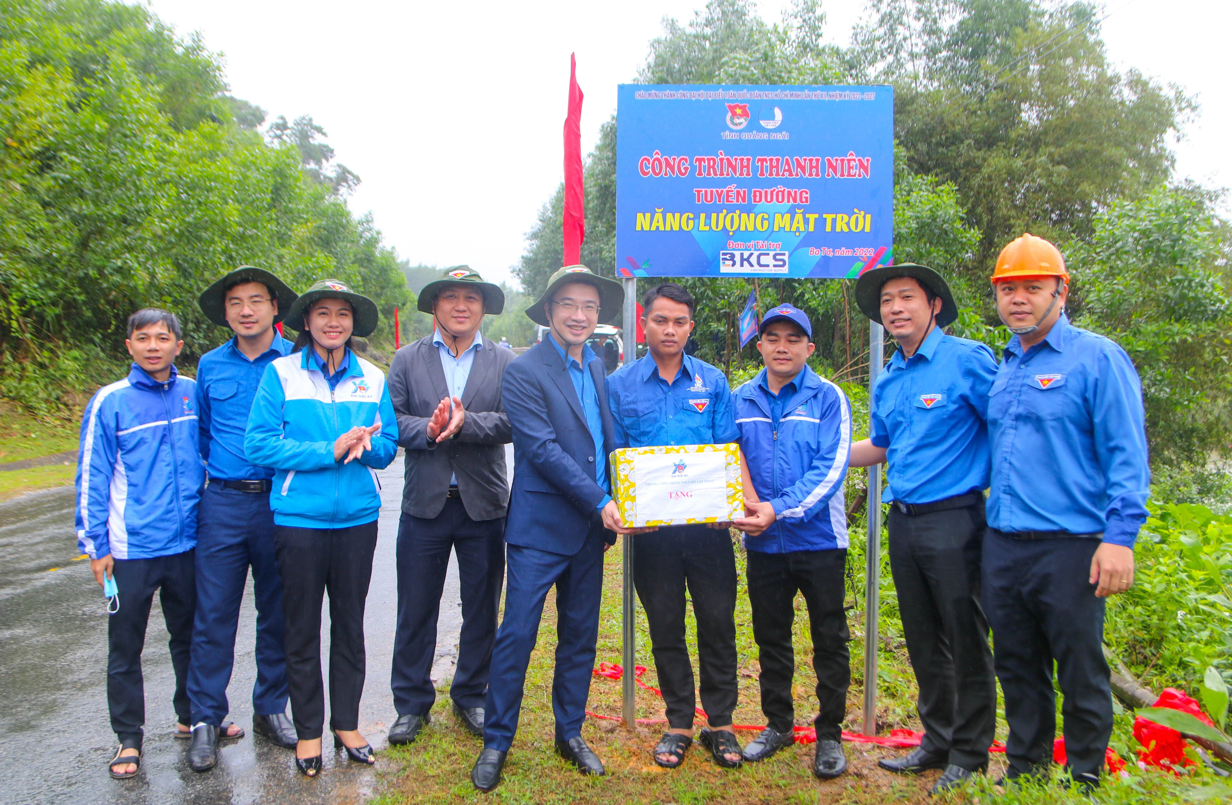 Bí thư Trung ương Đoàn thăm và tặng quà cho thanh niên thực hiện công trình tuyến đường điện năng lượng mặt trời.