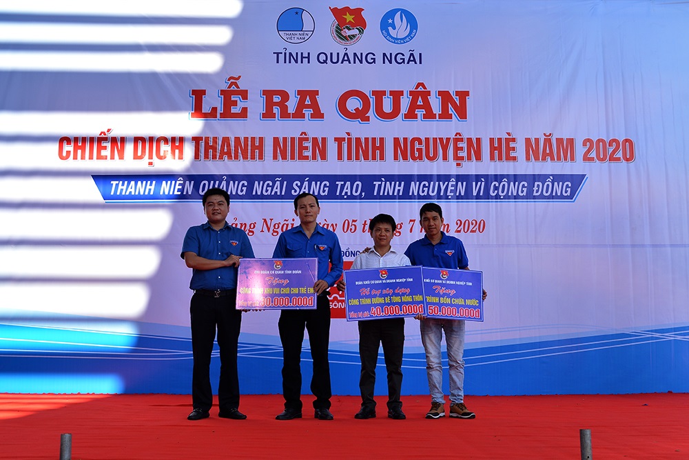 Tại buổi lễ, Tỉnh đoàn và đại diện các đơn vị đảm nhận công trình đã trao bảng tượng trưng tặng 4 công trình thanh niên thực hiện tại Làng Thanh niên lập nghiệp Sơn Bua (huyện Sơn Tây). Đó là công trình lắp đặt hệ thống bồn chứa nước cho các hộ dân của Đoàn khối Cơ quan và Doanh nghiệp tỉnh; công trình "Thư viện cho em" của Hội đồng Đội tỉnh, công trình "Khu vui chơi cho em" của chi đoàn cơ quan Tỉnh đoàn và công trình 2 tuyến đường bê tông nông thôn. Tổng kinh phí cho các công trình này là 150 triệu đồng.Ngay sau lễ phát động hơn 300 thanh niên, học sinh, sinh viên tham gia Diễn đàn thúc đẩy tư duy đổi mới, sáng tạo và khởi nghiệp do Tỉnh đoàn tổ chức tại Trung tâm hoạt động Thanh thiếu nhi Diên Hồng. Đồng thời, các cánh quân ra quân tham gia hoạt động chủ nhật xanh đảm bảo an ninh trật tự và xây dựng mỹ quan đô thị trên địa bàn TP. Quảng Ngãi.