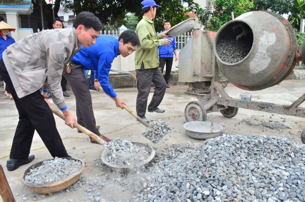 Đoàn viên thanh niên tham gia hoàn thành sân chơi cho thanh thiếu niên tại thôn Thọ Hưng, xã Minh Châu (Đông Hưng).