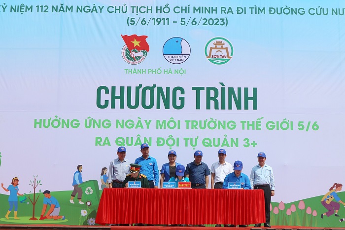 Tại chương trình, đã diễn ra lễ ký cam kết phối hợp giữ gìn vệ sinh môi trường, bảo đảm an toàn giao thông, văn minh đô thị, trật tự an toàn xã hội; tuyên truyền nâng cao văn hóa ứng xử, ý thức chấp hành pháp luật, giữ gìn văn hóa truyền thống, hình ảnh Thủ đô thanh lịch, văn minh giữa Đoàn TNCS Hồ Chí Minh, Hội Liên hiệp Phụ nữ và Hội Cựu chiến binh Thị xã Sơn Tây.