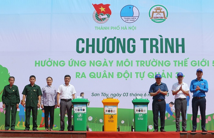 Trao tặng thẻ tình nguyện viên và mũ Thanh niên Việt Nam cho 4 đội hình; tặng thùng rác phân loại, làn nhựa đi chợ, bịch túi đựng rác tự phân hủy, cho nhân dân Thị xã Sơn Tây.