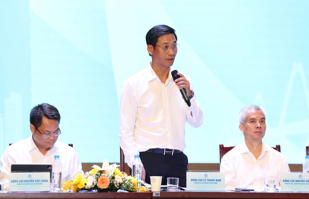 Đồng chí Lê Thành Nam, Giám đốc Sở Tài nguyên và Môi trường Hà Nội trả lời câu hỏi tại hội nghị