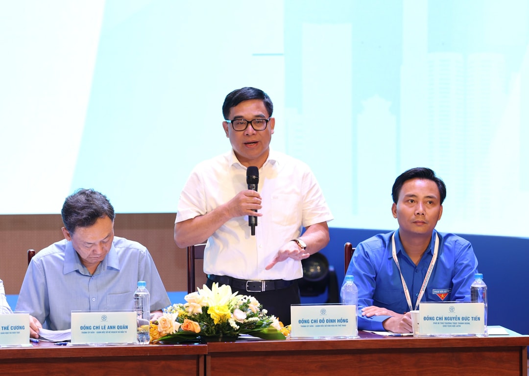 Giám đốc Sở Văn hóa và Thể thao Đỗ Đình Hồng tham gia trả lời câu hỏi của thanh niên Thủ đô.