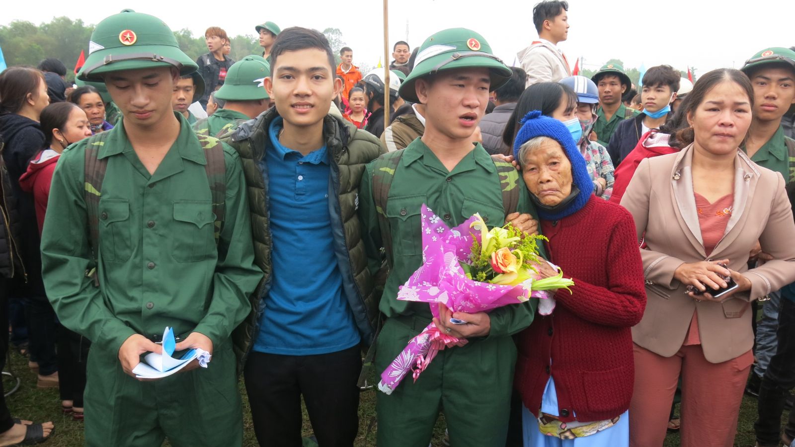Các tân binh chia tay người thân lên đường nhập ngũ