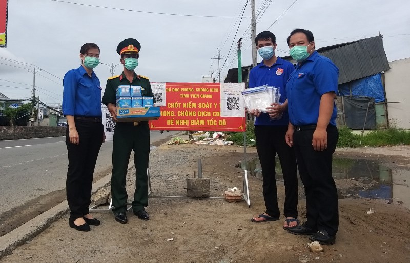 Tại huyện Gò Công Đông, Ban Thường vụ Tỉnh Đoàn tổ chức trao tặng 10 máy rửa tay tự động cho Uỷ ban nhân dân các xã trên địa bàn huyện, hỗ trợ công tác thực hiện thủ tục hành chính của cơ quan và người dân đảm bảo an toàn, trị giá 10 triệu đồng. Bên cạnh đó, Ban Thường vụ Tỉnh Đoàn hỗ trợ nguồn lực đến các đội hình Thanh niên tình nguyện phòng chống dịch bệnh Covid-19 tại các chốt kiểm tra, kiểm soát phòng, chống dịch Covid-19 tại các trạm thu phí, các cửa ngõ vào địa bàn tỉnh như: mũ chắn giọt bắn phòng chống lây nhiễm Covid-19, khẩu trang y tế, các nhu yếu phẩm…