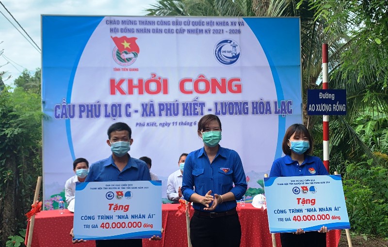 Ban Thường vụ Tỉnh Đoàn trao tặng 05 căn nhà nhân ái cho thanh niên có hoàn cảnh khó khăn về nhà ở trên địa bàn tỉnh (tại Chợ Gạo 02 căn) trị giá 200 triệu đồng.