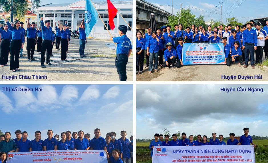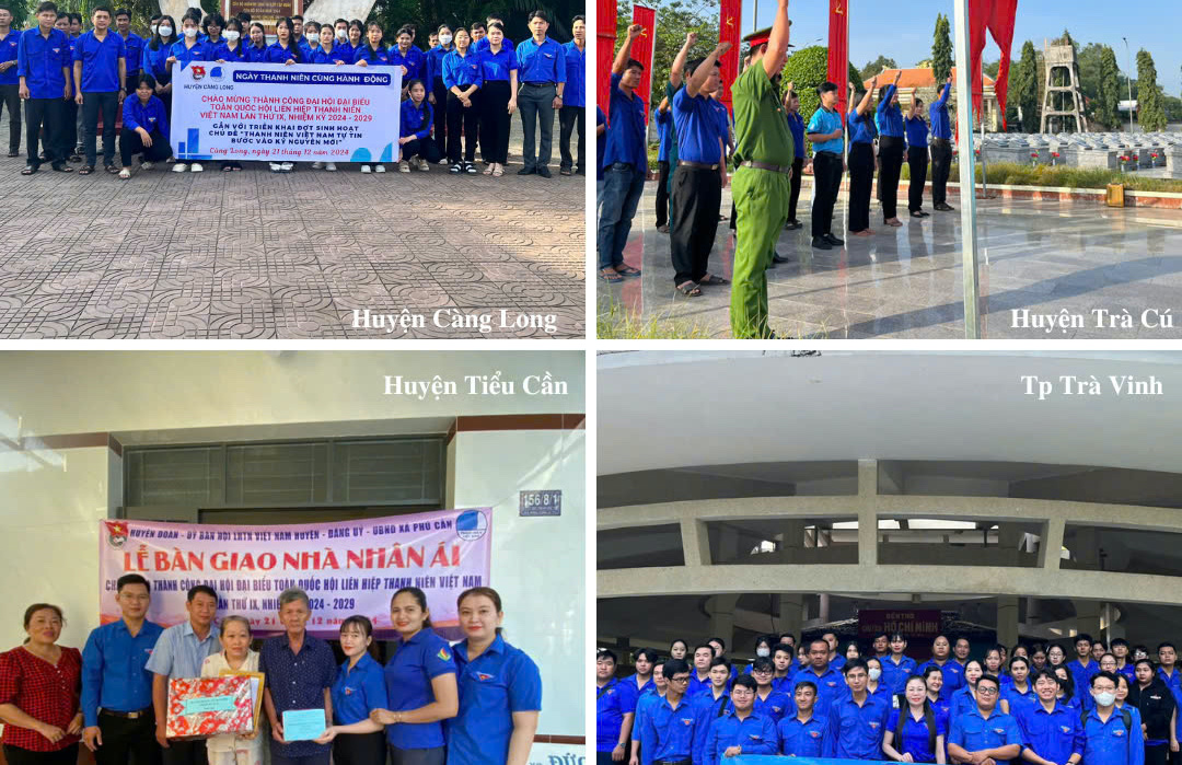 Cùng ngày, tại 9/9 huyện, thị xã, thành phố, Ban Thư ký Ủy ban Hội LHTN Việt Nam tỉnh đã chỉ đạo đồng loạt ra quân tổ chức các hoạt động chào mừng thành công đại hội. Hơn 900 cán bộ, hội viên, thanh niên náo nức tham gia hoạt động trên khắp các địa phương. Nhiều công trình ý nghĩa được triển khai, góp phần tô đậm hình ảnh tuổi trẻ Trà Vinh tích cực và tràn đầy nhiệt huyết.