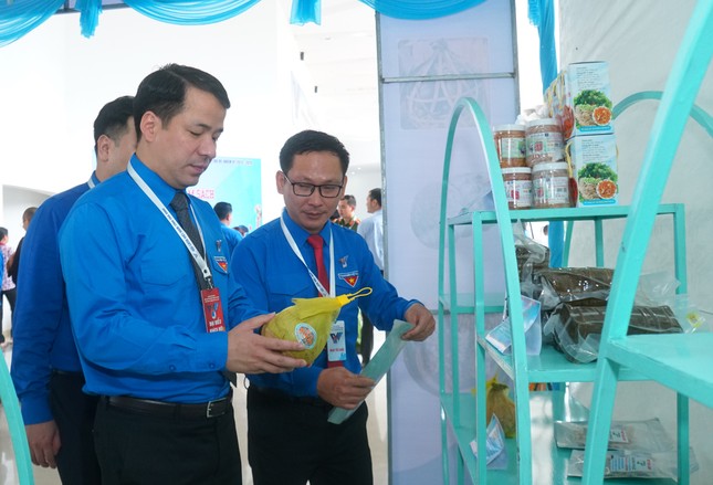 Đồng chí Ngô Văn Cương, Bí thư T.Ư Đoàn, Chủ nhiệm Ủy ban kiểm tra T.Ư Đoàn tham quan sản phẩm khởi nghiệp của thanh niên Trà Vinh