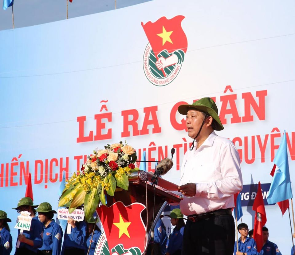 Đồng chí Trương Hòa Bình, Ủy viên Bộ Chính trị, Phó Thủ tướng Chính phủ trao cờ lệnh xuất quân Chiến dịch thanh niên tình nguyện Hè 2020