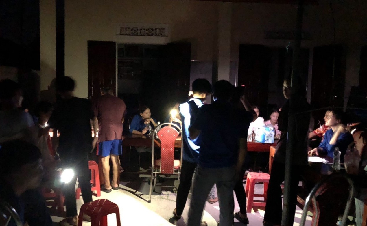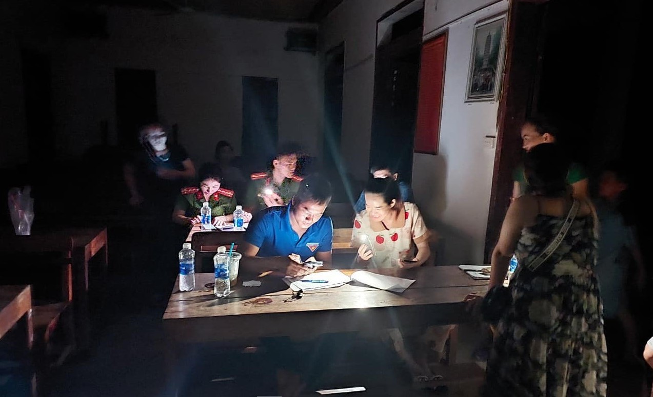 Những đêm mất điện, các lực lượng phải soi đèn pin, đèn điện thoại hỗ trợ người dân cài đặt, kích hoạt tài khoản định danh điện tử.