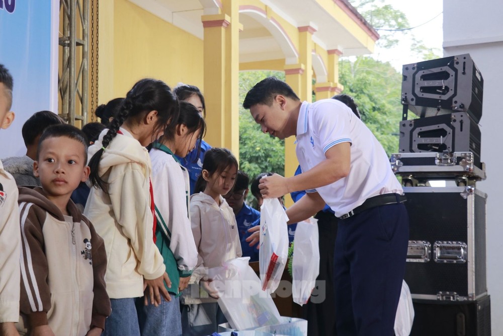 Tại buổi phát động, lãnh đạo Tỉnh Đoàn trao hỗ trợ hộ dân bị ảnh hưởng do cơn bão số 3, các em học sinh có hoàn cảnh khó khăn trên địa bàn xã.