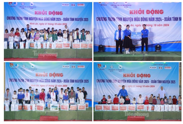 Ngoài ra, trao hỗ trợ xây dựng công trình "Sân chơi cho em”; trao 100 suất quà, mỗi suất trị giá 500 nghìn đồng cho học sinh Trường Tiểu học Minh An, Trường THCS Minh An, huyện Văn Chấn...