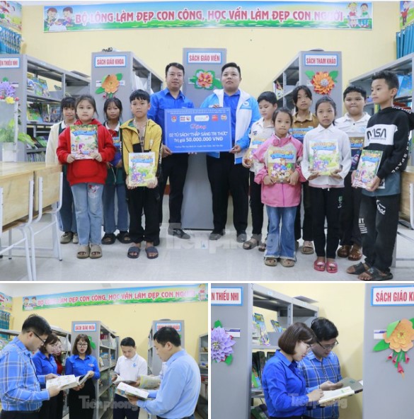 Trao hỗ trợ và trực tiếp đến tham quan 6 tủ sách "Thắp sáng tri thức”, trị giá 150 triệu đồng cho Trường Tiểu học Minh An, Trường THCS Minh An, huyện Văn Chấn...