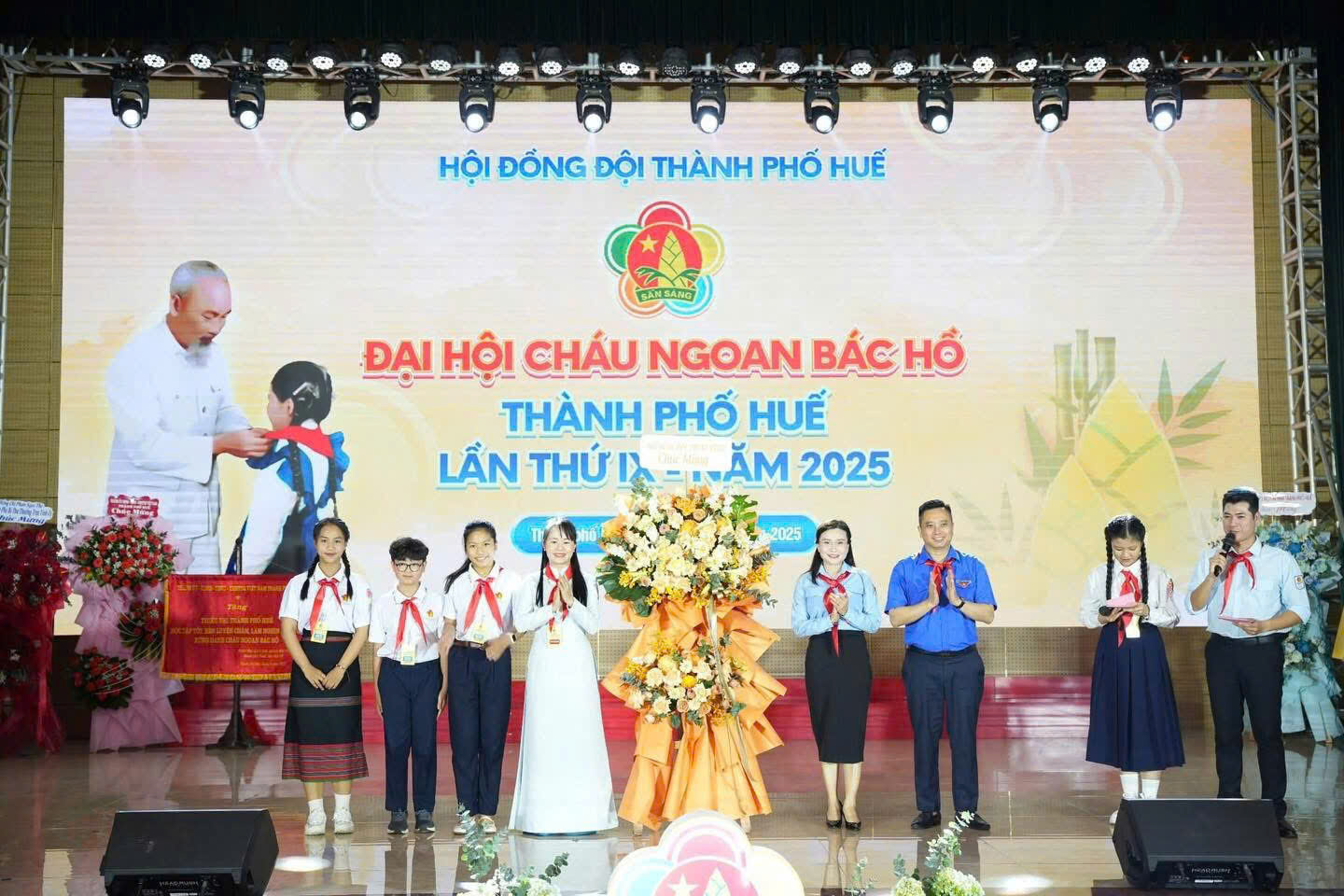 Dịp này, đồng chí Hoàng Khánh Hùng, Trưởng Ban Tuyên giáo và Dân vận Thành ủy tặng bức trướng của Thành ủy, HĐND, UBND, Ủy ban MTTQ Việt Nam thành phố Huế với nội dung "Thiếu nhi thành phố Huế học tập tốt, rèn luyện chăm, làm nghìn việc tốt xứng danh Cháu ngoan Bác Hồ".
