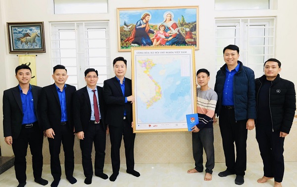 Đoàn công tác của Tỉnh đoàn Nghệ An do các đồng chí: Lê Văn Lương – UVBTV TW Đoàn, Tỉnh uỷ viên, Bí thư Tỉnh đoàn; Nguyễn Thị Phương Thuý – UV Uỷ ban TW Hội LHTN Việt Nam, Phó Bí thư Tỉnh đoàn, Chủ tịch Hội LHTN tỉnh trao tặng bản đồ cho các thanh niên công giáo tiêu biểu: đồng chí Nguyễn Văn Hiền, UVBTV Đoàn xã Nghi Diên, huyện Nghi Lộc; đồng chí Trần Minh Hậu - UVBTV Đoàn xã Quỳnh Hồng, huyện Quỳnh Lưu. Đoàn các đơn vị trực thuộc và cơ sở đã tổ chức trao tặng Bản đồ cho các giáo xứ, nhà thợ đạo, nhà văn hóa thôn xóm, đồng bào vùng sâu vùng xa; trao tặng cho các thanh niên công giáo tiêu biểu.