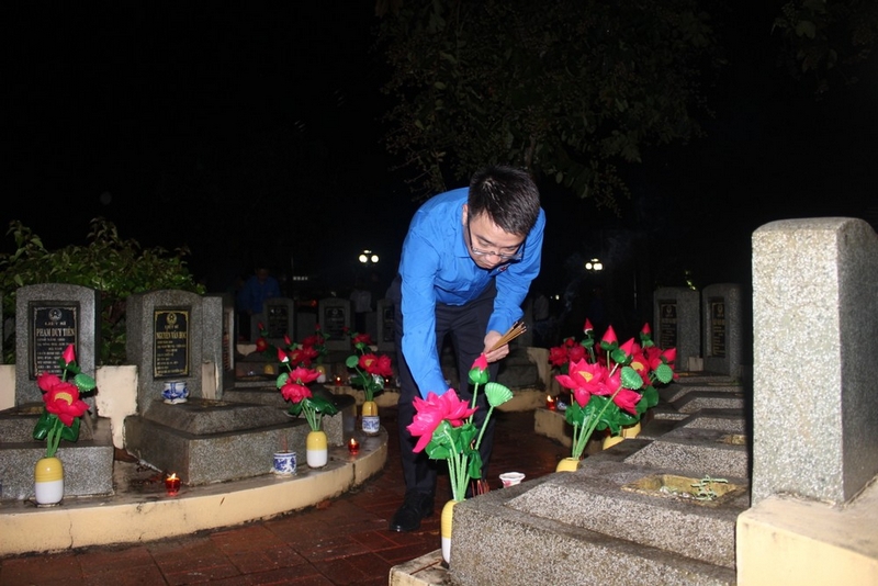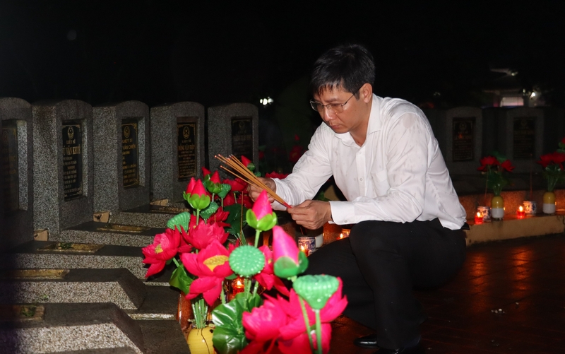 Sau khi đánh ba hồi chuông chiêu gọi vong linh các Anh hùng liệt sĩ tại Đồi 82, các đại biểu đã dành một phút mặc niệm và thắp lên hàng ngàn ngọn nến lung linh, dâng hương, dâng hoa tri ân các anh hùng liệt sĩ đã hy sinh vì sự nghiệp giải phóng dân tộc, thống nhất đất nước.