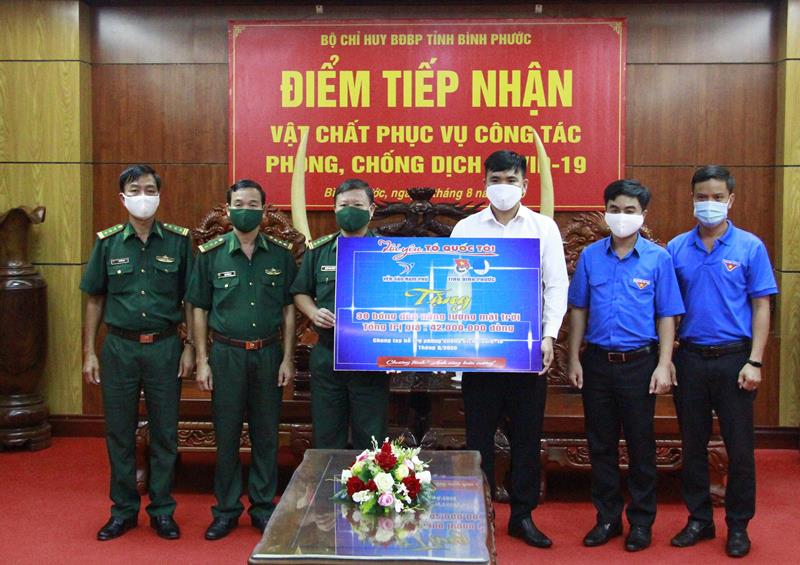 Tại đây, 38 bóng đèn năng lượng mặt trời với tổng trị giá 42 triệu đồng đã được trao tặng cho những chốt kiểm soát, phòng chống dịch bệnh tại các đường mòn, lối mở trên các tuyến biên giới nhằm góp phần tạo điều kiện sinh hoạt tốt hơn cho các chiến sĩ đang túc trực 24/24 giờ nơi tuyến đầu chống dịch, “đội nắng thắng mưa”, quyết tạo những “lá chắn thép” để chặn dịch xâm nhập từ biên giới.