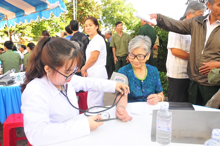 Tại chương trình, đội ngũ Y Bác sỹ Bệnh viện Đa khoa Medic Bình Dương phối hợp với Trung tâm y tế huyện Bù Đốp tổ chức khám bệnh, cấp thuốc miễn phí và tặng mắt kính cho 200 lượt hội viên Hội cựu chiến binh huyện Bù Đốp với tổng trị giá 500 ngàn đồng/lượt.