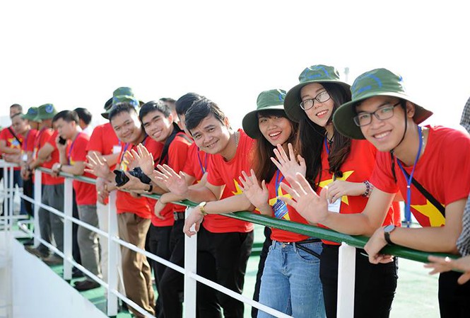 Bí thư T.Ư Đoàn Bùi Quang Huy và các đại biểu tham gia Hành trình Tuổi trẻ vì biển đảo quê hương năm 2018