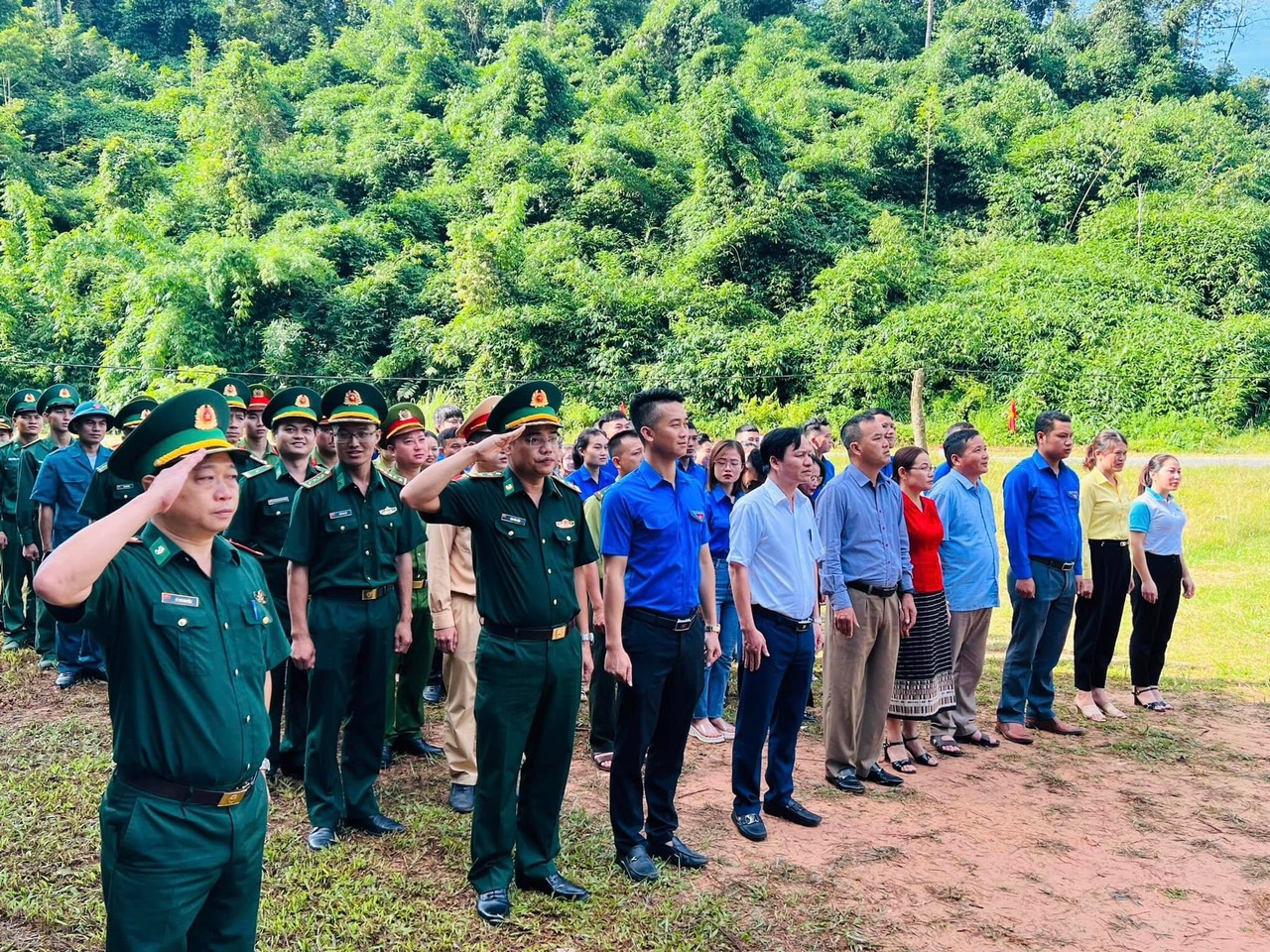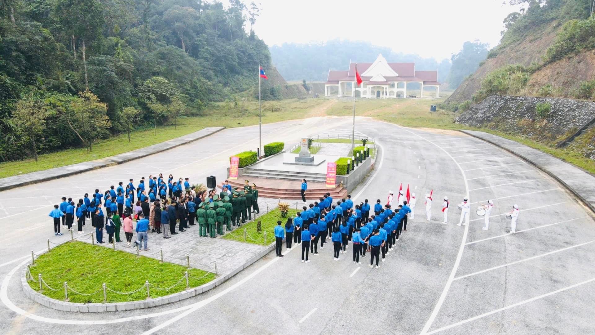 Trước đó, tại huyện Thanh Chương, các bạn trẻ cũng đã cùng các chiến sĩ tại Đồn Biên phòng Cửa khẩu Thanh Thủy tổ chức lễ chào cờ tại cột mốc 460, cột mốc biên giới Việt - Lào.