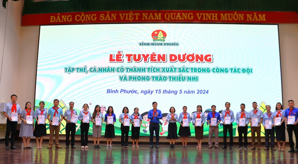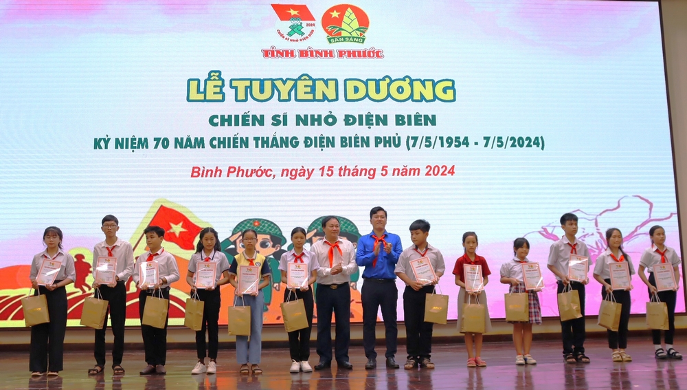 Dịp này, thừa ủy quyền của Hội đồng Đội Trung ương, Hội đồng Đội tỉnh đã trao giải thưởng Kim Đồng cho 02 em đội viên xuất sắc của tỉnh Bình Phước trong số 125 đội viên trên toàn quốc được nhận giải; tuyên dương danh hiệu “Chiến sĩ nhỏ Điện Biên” cấp tỉnh năm 2024 cho 44 em đội viên; tuyên dương 55 gương thầy, cô Tổng phụ trách Đội và 22 Liên đội tiêu biểu có thành tích xuất sắc trong công tác Đội và phong trào thiếu nhi.