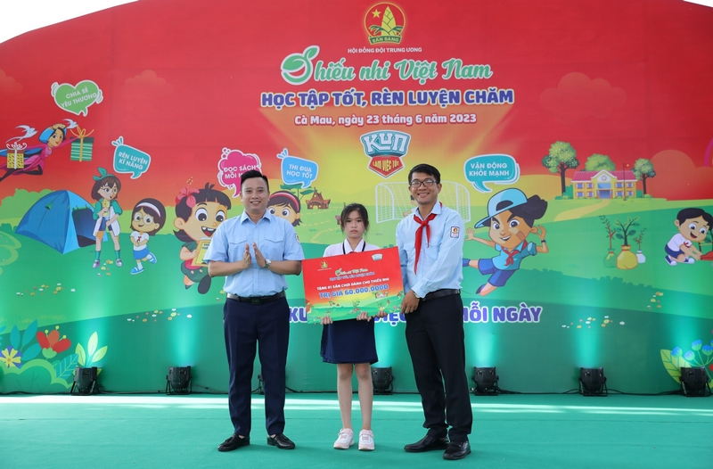 Tại ngày hội, Hội đồng Đội Trung ương đã trao tặng 02 công trình sân chơi tái chế cho thiếu nhi tại tỉnh Cà Mau với tổng giá trị 60 triệu đồng, nguồn kinh phí thực hiện do Công ty Cổ phần Sữa quốc tế (IDP) hỗ trợ từ hoạt động đi bộ đồng hành của các em thiếu nhi tỉnh nhà.