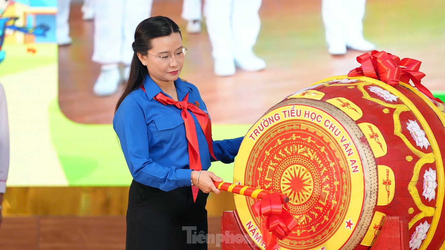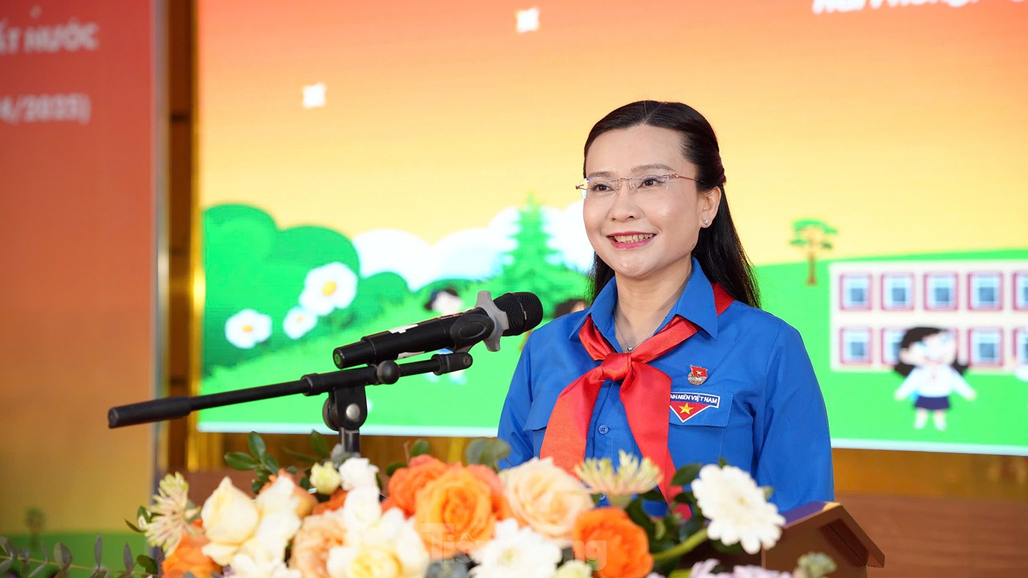 Đồng chí Nguyễn Phạm Duy Trang, Bí thư Trung ương Đoàn, Chủ tịch Hội đồng Đội Trung ương dự ngày hội tại điểm cầu Trường Tiểu học Chu Văn An, thành phố Hải Phòng.