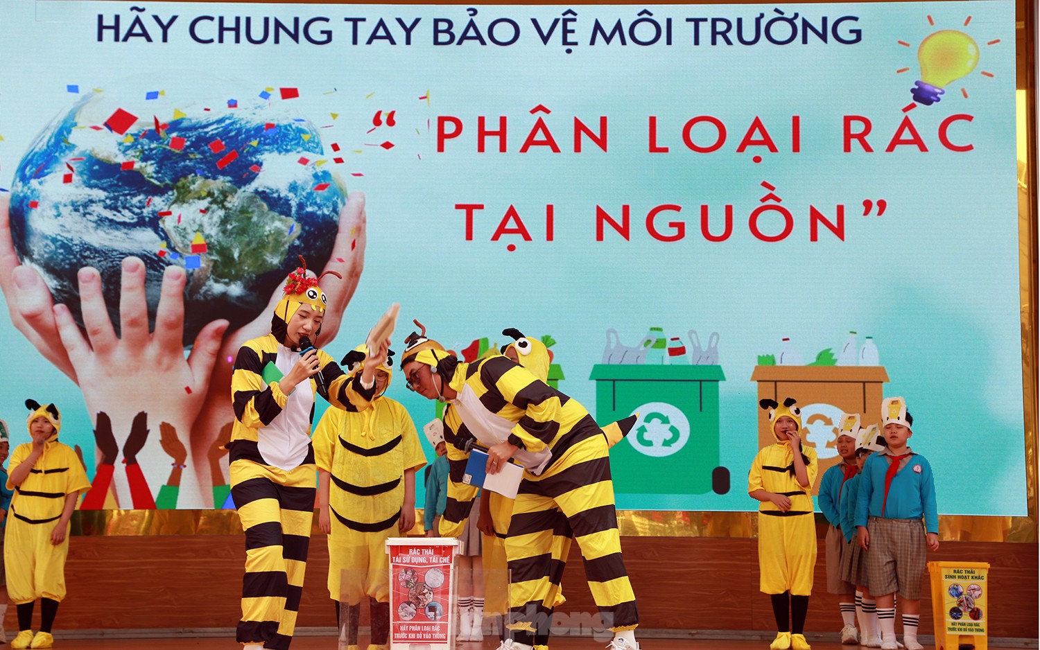 Thầy và trò Trường Tiểu học Chu Văn An đã sáng tạo, tuyên truyền phân loại rác thải tại nguồn bằng nhiều hình thức múa hát, tiểu phẩm kết hợp với chơi trò chơi, trả lời trắc nghiệm… một cách sinh động, thu hút hàng nghìn em thiếu nhi tương tác, hưởng ứng.