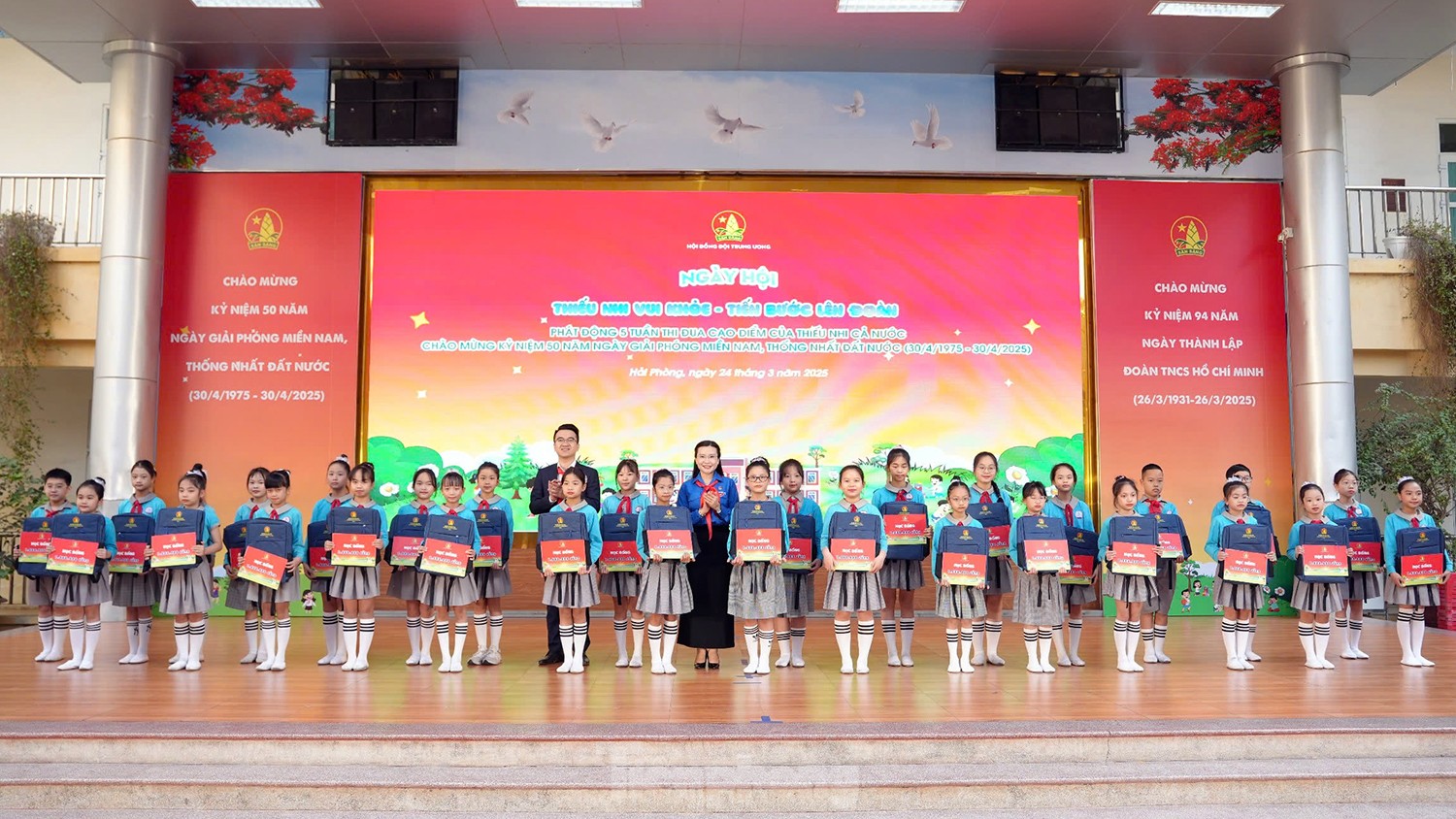 Cùng dự tại điểm cầu Hải Phòng, còn có đồng chí Lê Khắc Nguyên Anh, Bí thư Thành đoàn Hải Phòng và hàng nghìn em thiếu nhi thành phố.