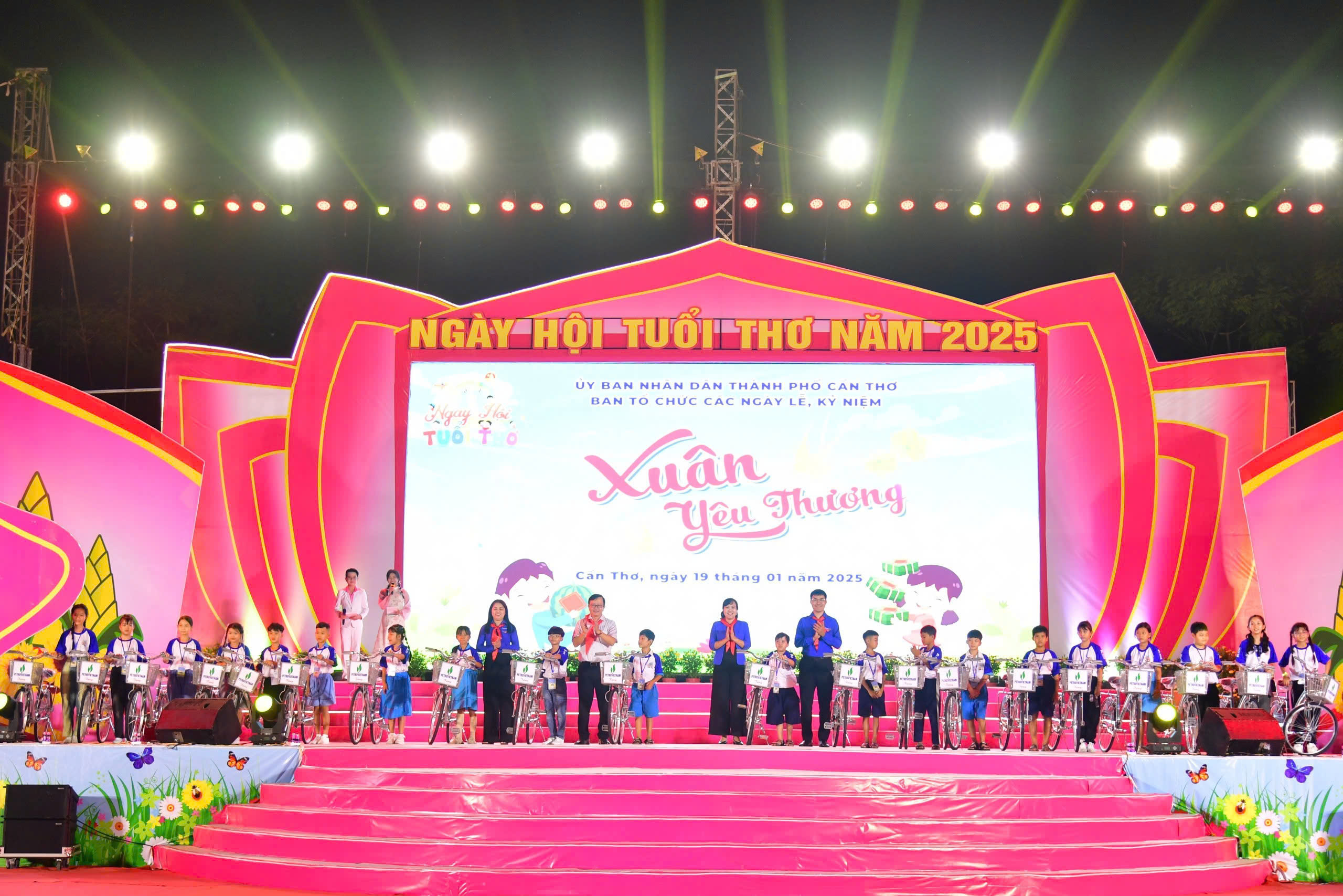 Nhân dịp này, Ban Tổ chức chương trình cùng các nhà hảo tâm đã trao tặng những phần quà ý nghĩa nhằm động viên và hỗ trợ các em thiếu nhi có hoàn cảnh khó khăn trên địa bàn thành phố. Những phần quà thiết thực như xe đạp và các vật phẩm cần thiết đã được trao tận tay các em với mong muốn giúp đỡ các em vơi bớt khó khăn trong cuộc sống. Đây không chỉ là sự sẻ chia về mặt vật chất mà còn là sự quan tâm, khích lệ về mặt tinh thần, giúp các em cảm nhận được tình yêu thương và tiếp thêm động lực để các em nỗ lực hơn nữa trong học tập, trở thành những công dân có ích cho xã hội và không ngừng vươn cao, vươn xa trong tương lai.