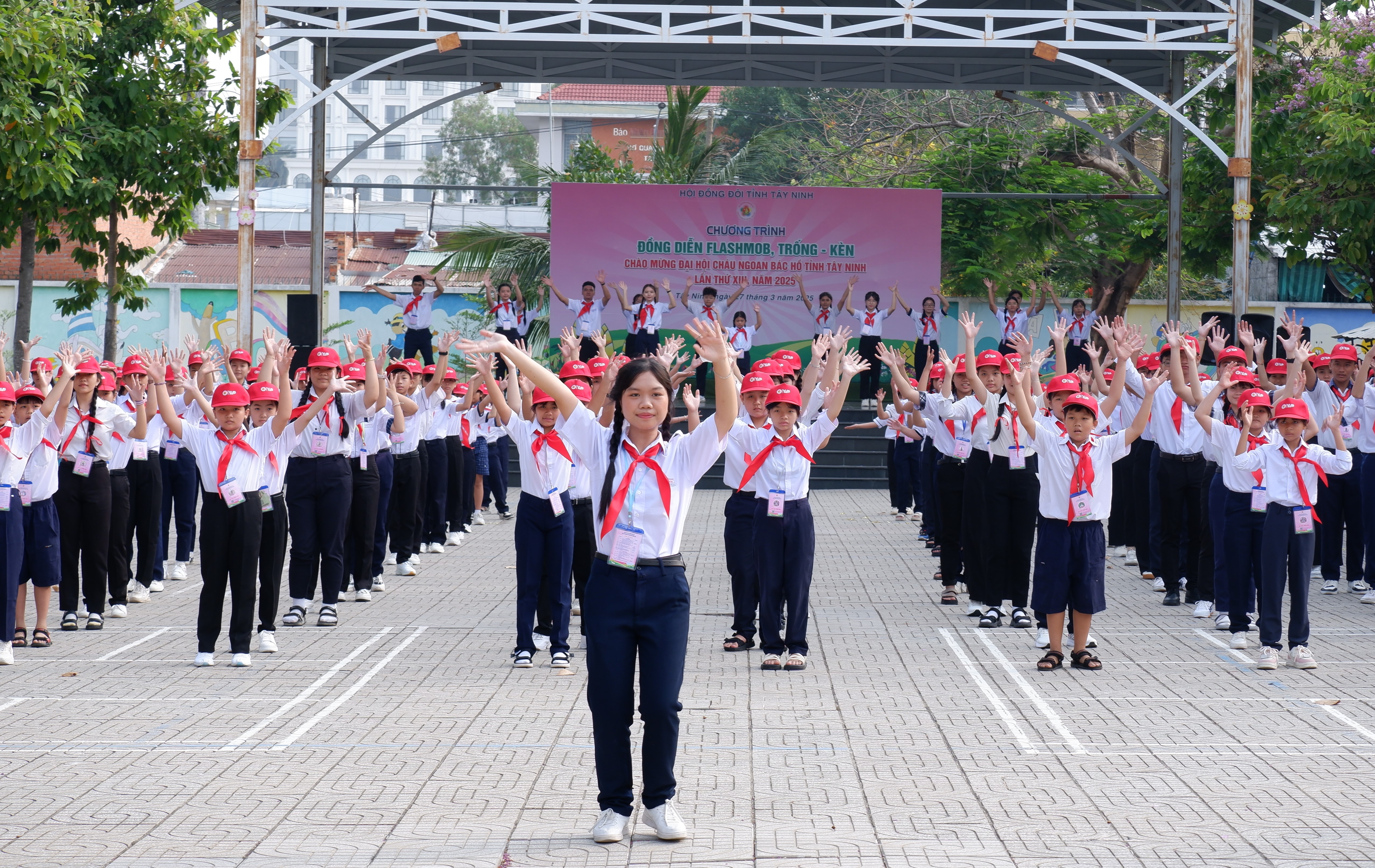 Sáng cùng ngày, 200 đại biểu thiếu nhi đã tham gia chương trình gặp gỡ, báo công với các đồng chí lãnh đạo tỉnh và đồng diễn flashmob và đồng diễn trống kèn Chào mừng Đại hội Cháu ngoan Bác Hồ tỉnh Tây Ninh lần thứ XIII, năm 2025.