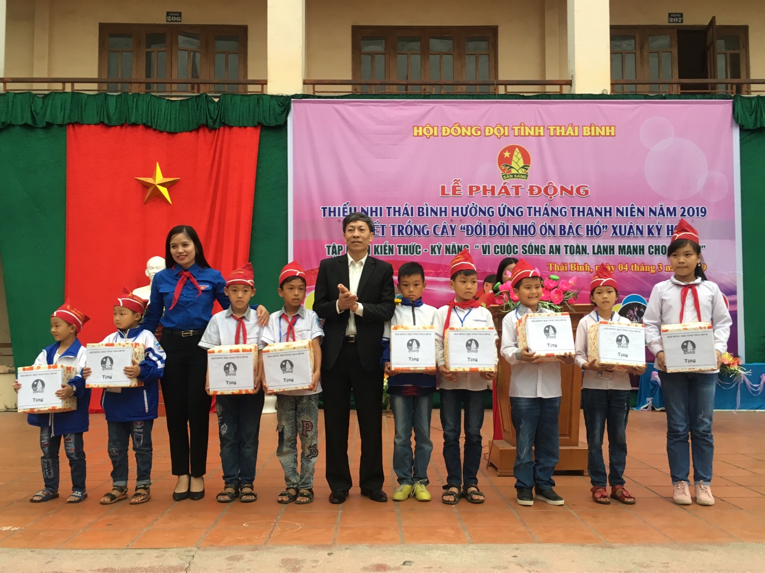 Hội đồng Đội tỉnh đã trao tặng 10 suất quà cho các em học sinh có hoàn cảnh khó khăn; tặng 02 cây xanh trị giá 03 triệu đồng cho trường Tiểu học Lê Danh Phương.