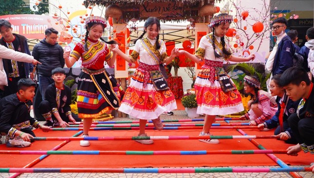 Thiếu nhi tham gia trò chơi dân gian nhảy sạp tại Ngày hội