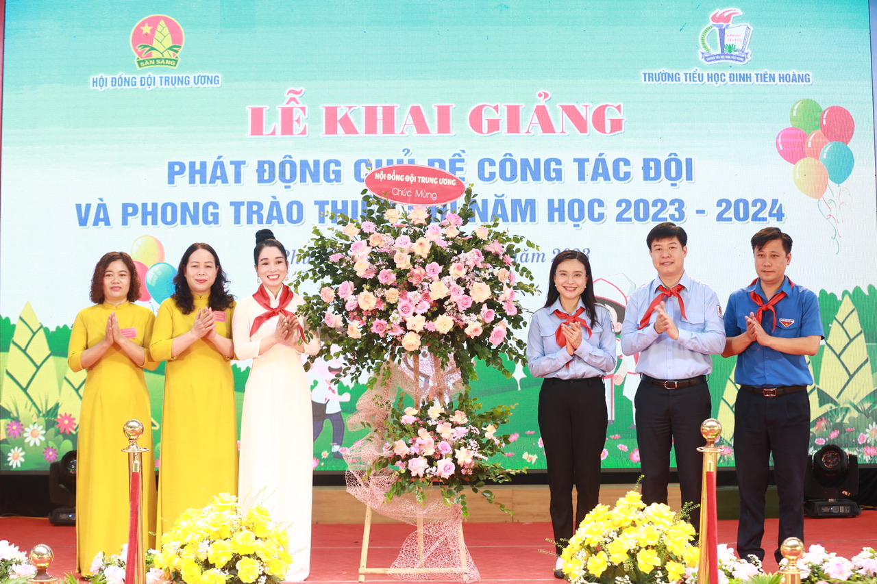 Tham dự Lễ Khai giảng có đồng chí Nguyễn Phạm Duy Trang, Bí thư T.Ư Đoàn, Chủ tịch Hội đồng Đội T.Ư; đồng chí Nguyễn Thị Thanh Huyền, Trưởng ban Dân vận Tỉnh ủy; đồng chí Lê Hải Long, Uỷ viên BTV, Trưởng Ban Công tác thiếu nhi Trung ương Đoàn, Phó Chủ tịch Thường trực Hội đồng Đội Trung ương; đồng chí Bùi Đức Giang, Uỷ viên BCH T.Ư Đoàn, Bí thư Tỉnh Đoàn Phú Thọ; đồng chí Trần Thị Ánh Nguyệt, Hiệu trưởng Trường Tiểu học Đinh Tiên Hoàng;… cùng 2.400 em học sinh.