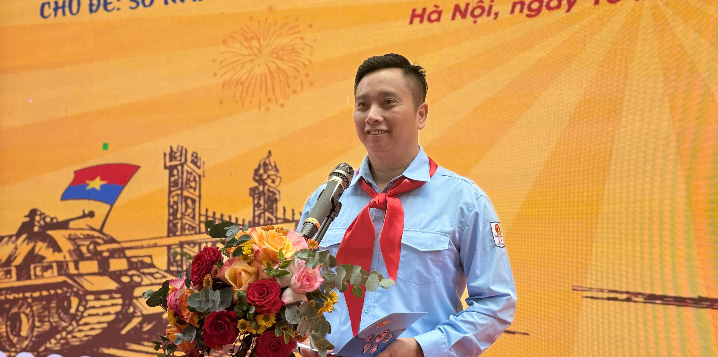 Đồng chí Lê Anh Quân, Phó Trưởng ban Công tác Thiếu nhi Trung ương Đoàn, Phó Chủ tịch Hội đồng Đội Trung ương, Giám đốc Trung tâm hỗ trợ và phát triển thiếu nhi Việt Nam phát biểu tại chương trình