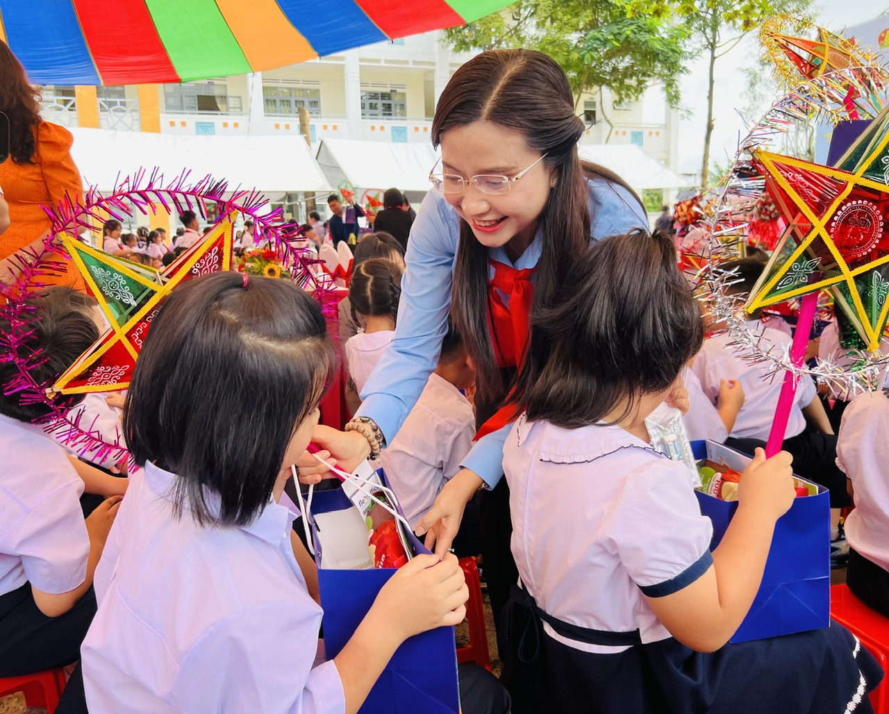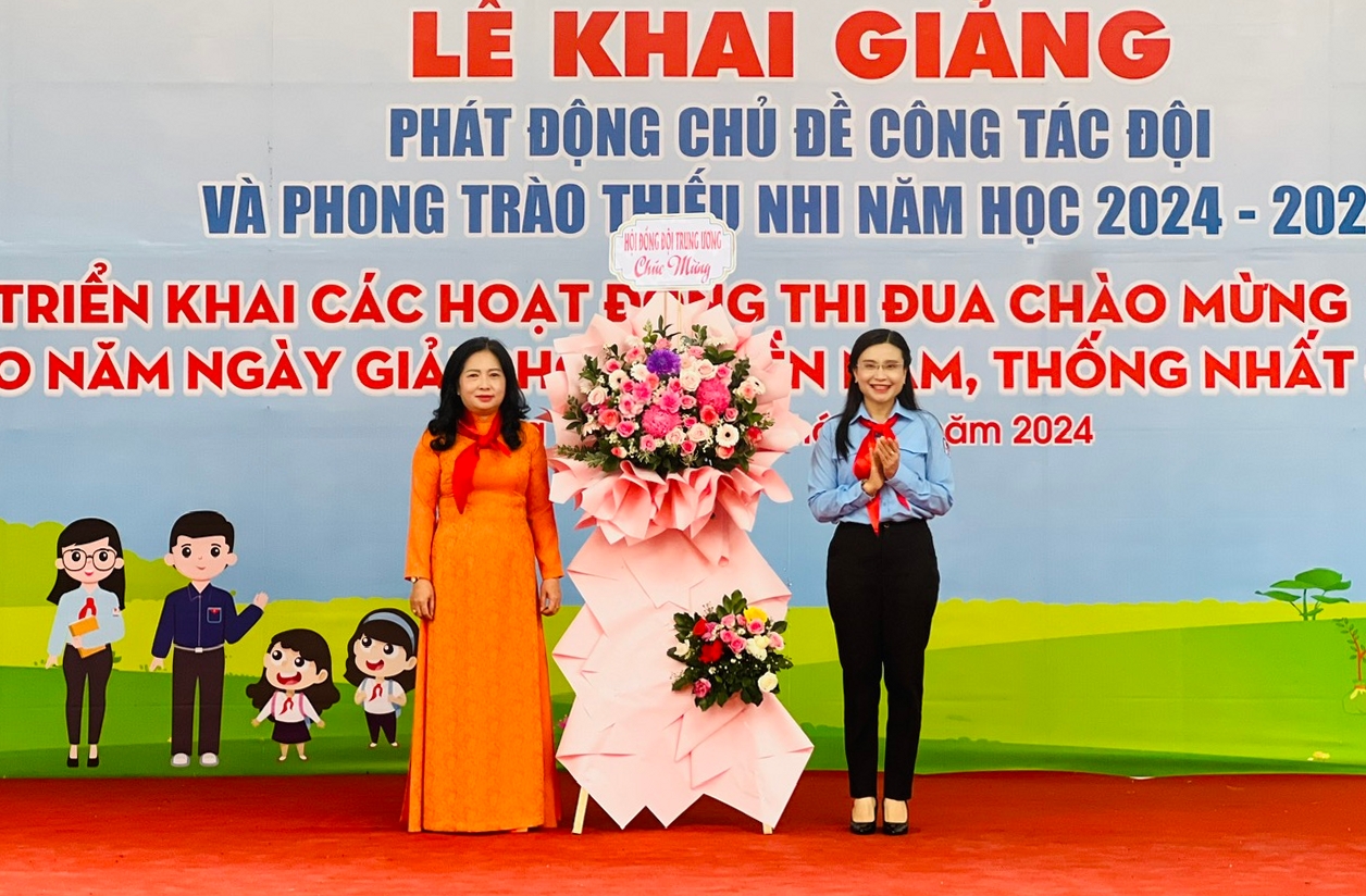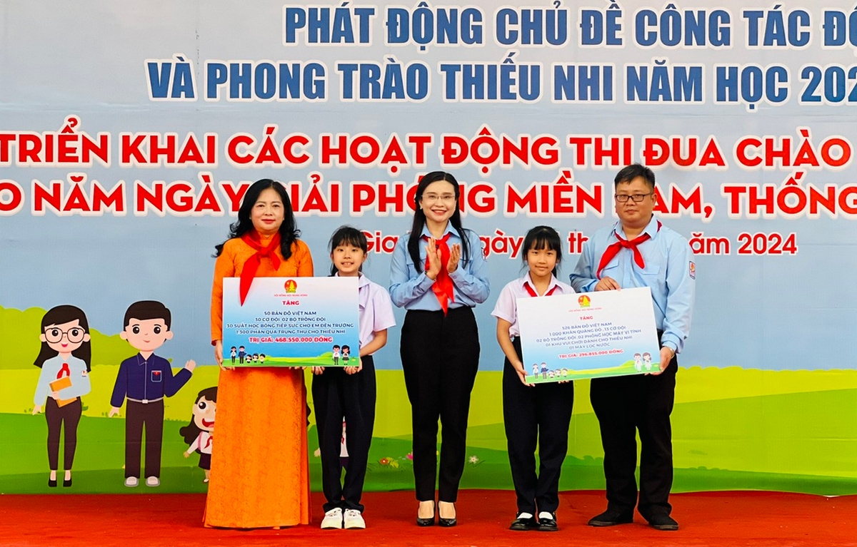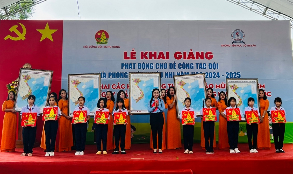 Tại Lễ Khai giảng, phát động chủ đề công tác Đội và phong trào thiếu nhi năm học 2024 - 2025, triển khai các hoạt động thi đua chào mừng kỷ niệm 50 năm Ngày Giải phóng miền Nam thống nhất đất nước, Hội đồng Đội Trung ương trao tặng Tỉnh đoàn 526 bản đồ Việt Nam, 1.000 khăn quàng đỏ, 13 cờ Đội, 02 bộ trống Đội, 02 phòng học máy vi tính, 01 khu vui chơi dành cho thiếu nhi, 01 máy lọc nước; tặng trường Tiểu học Võ Thị Sáu 50 bản đồ Việt Nam, 30 cờ Đội, 02 bộ trống Đội, 30 suất học bổng tiếp sức cho em đến trường, 1.300 phần quà Trung thu.