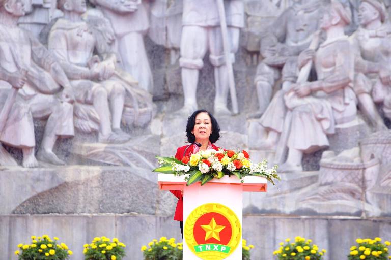 Đồng chí Trương Thị Mai, Ủy viên Bộ Chính trị, Trưởng Ban Dân vận Trung ương phát biểu tại Lễ kỷ niệm