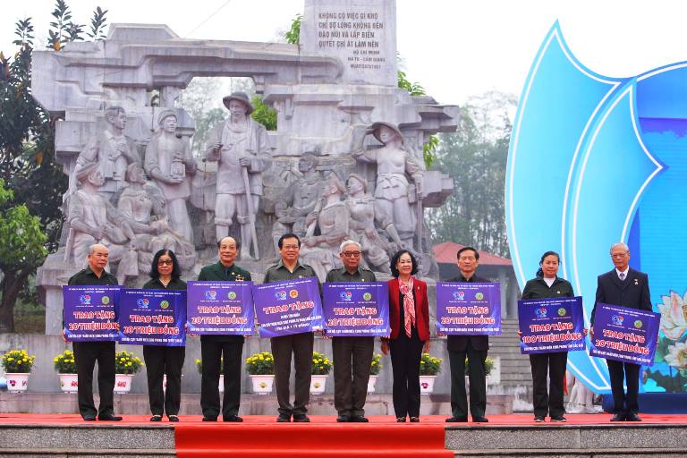 Đồng chí Trương Thị Mai, Ủy viên Bộ Chính trị, Trưởng Ban Dân vận Trung ương trao kinh phí hỗ trợ Hội cựu Thanh niên xung phong các tỉnh