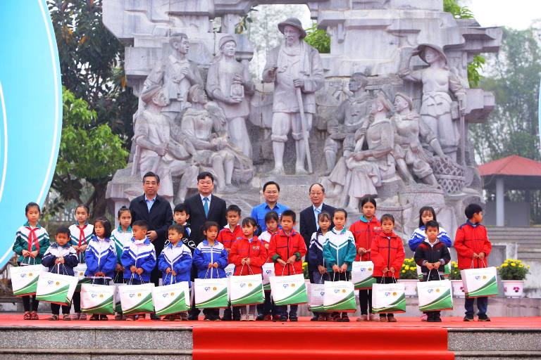Đồng chí Nguyễn Ngọc Lương, Bí thư Trung ương Đoàn, Chủ tịch Hội đồng Đội Trung ương trao tặng 01 điểm trường đẹp cho em trị giá 200 triệu đồng; 01 sân chơi thanh thiếu nhi trị giá 100 triệu đồng; 10 máy lọc nước cho 05 trường Tiểu học và Trung học cơ sở trên địa bàn tỉnh Bắc Kạn trị giá 100 triệu đồng.