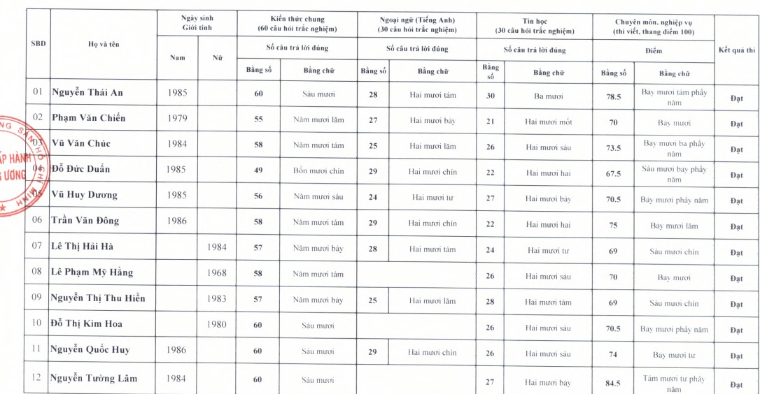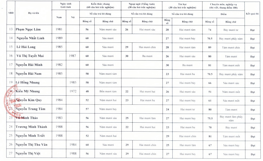 Thông báo kết quả thi nâng ngạch chuyên viên lên chuyên viên chính của cơ quan T.Ư Đoàn năm 2022
