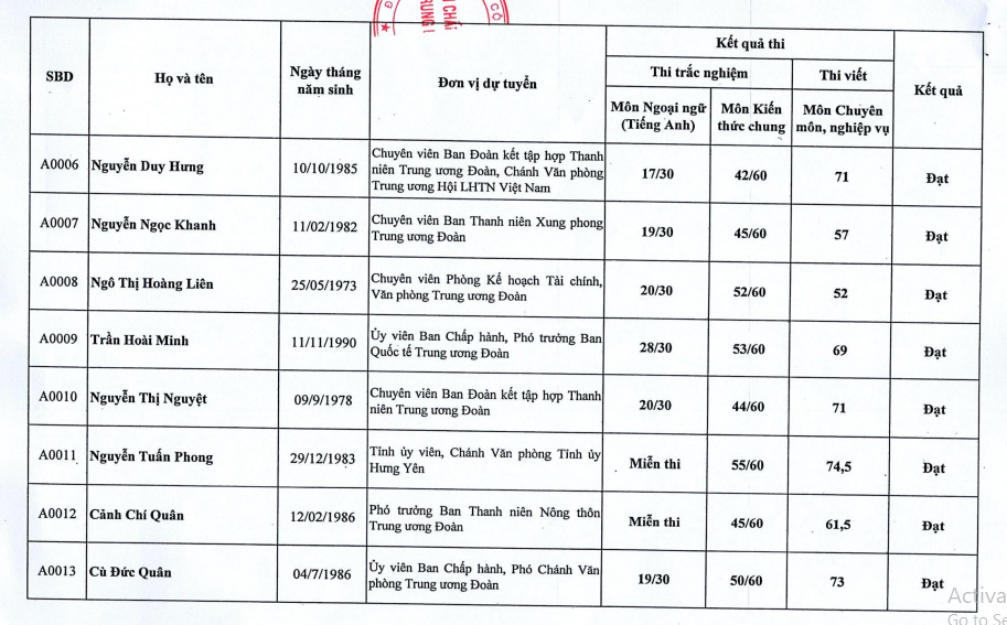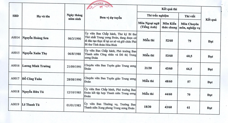 Địa chỉ nhận đơn phúc khảo: Thường trực Hội đồng thi nâng ngạch chuyên viên chính cơ quan Trung ương Đoàn - Ban tổ chức Trung ương Đoàn, Phòng 506, 62 Bà Triệu, Q. Hoàn Kiếm, Hà Nội.